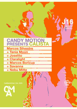 Candy Motion takes over Berlín Club with Calista, a night fully dedicated to electronic music in all its forms. A space to discover new sounds, connect with the dance floor and get carried away by the energy of a diverse, forward-thinking line up.